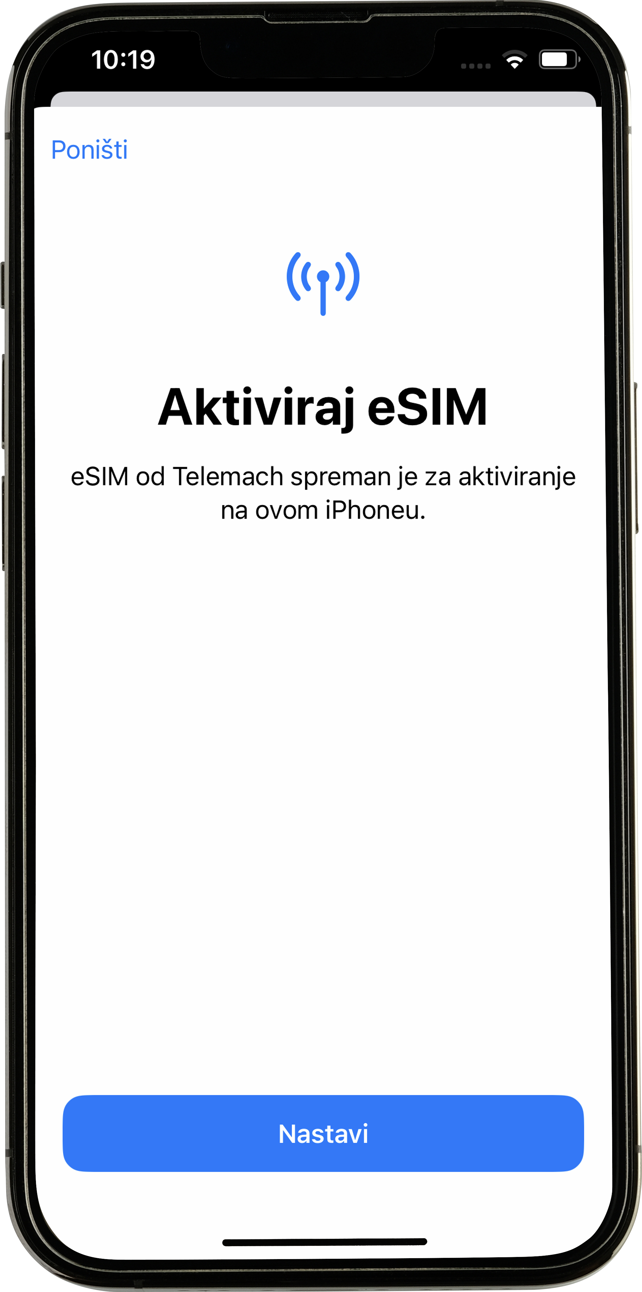 4. Odaberite "Nastavi" za aktivaciju eSIM kartice.