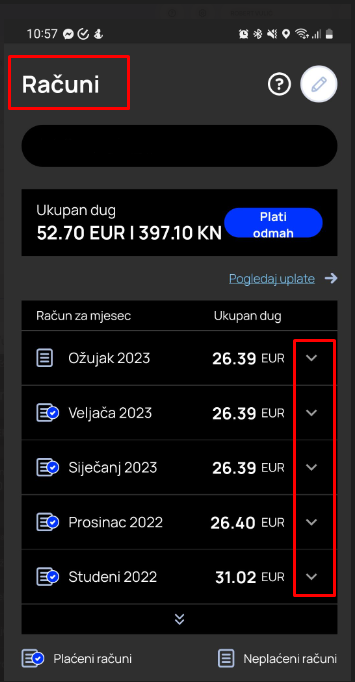 2. Odabirom ikone “Za preuzimanje računa” preuzimate PDF računa za određeni mjesec